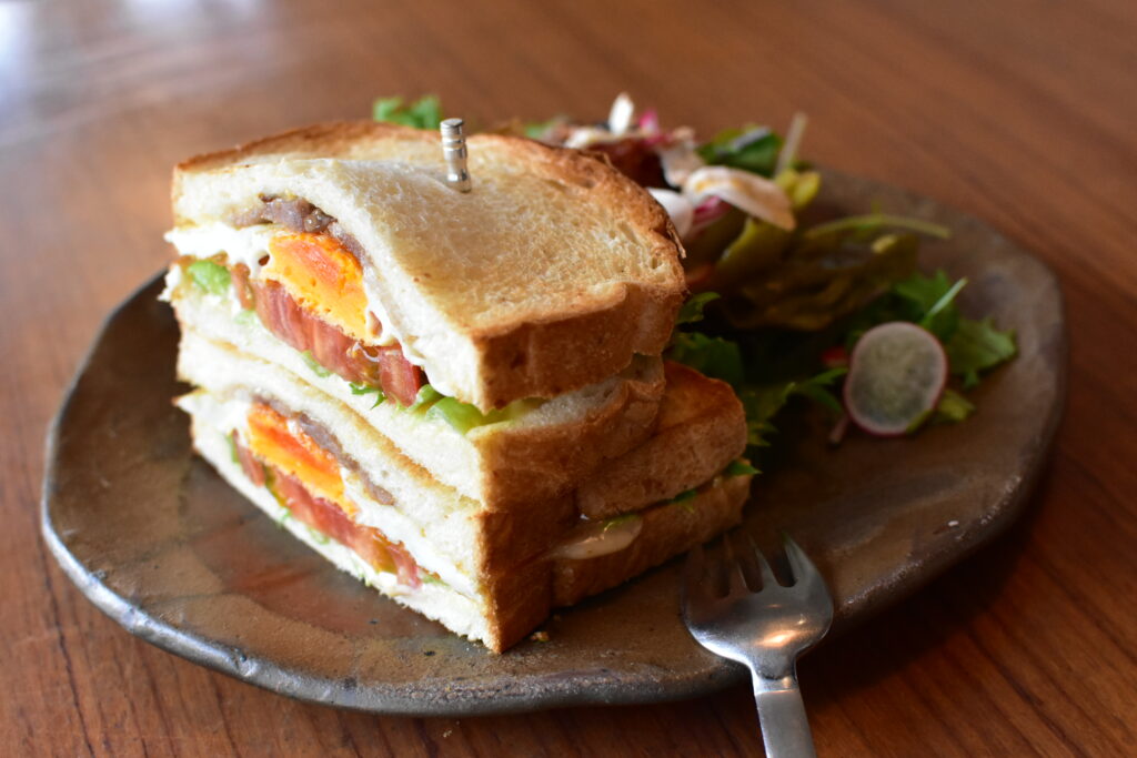 お店で扱うものは基本的に「自分たちが使うものは自分たちで作る」精神。スイーツに使うチョコレートから、気メニューの『B.L.E.Tのサンドウィッチ』に使われているベーコンまで手作りだというこだわりぶり。塩味の効いたベーコンは、レタス、卵、トマトと引きたてあって絶品です。